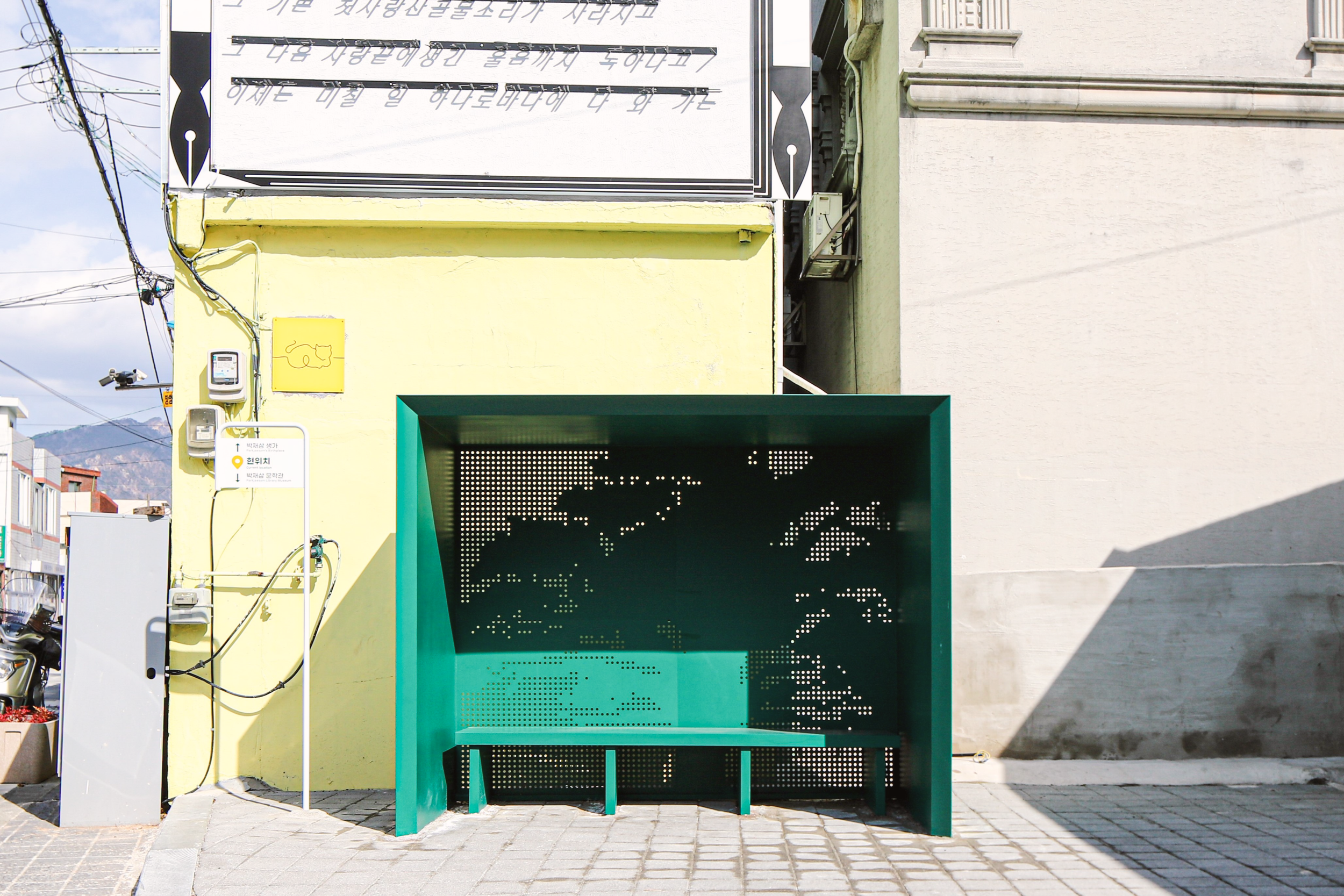 As part of the Park Jae-sam Street project in Sacheon, this installation redefines the traditional observational sculpture. Studio Moho has crafted a functional, bench-like form that facilitates an implicit engagement with the surrounding poetic environment.