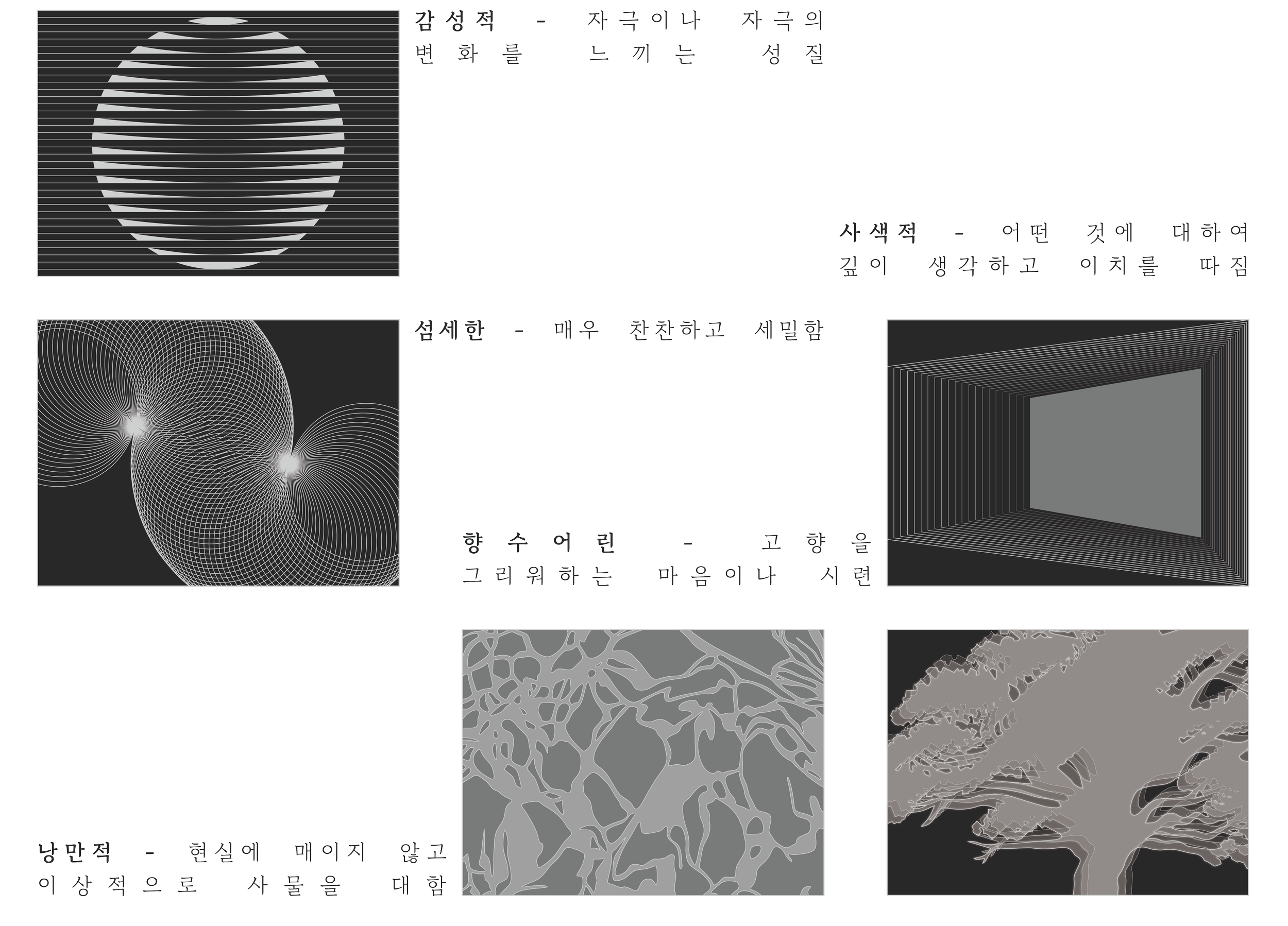 박재삼 시인의 문학 세계는 슬픔과 한, 그리고 자연의 고요한 아름다움 사이 섬세한 균형을 유지합니다. 본 프로젝트의 목적은 단순한 기념적 조형물을 디자인하는 것을 넘어, 도시의 일상적인 리듬과 시인의 정서적 울림이 만나는 감상적 전이 공간을 연출하는 것이었습니다. 이를 위해 우리는 시인의 운율을 신체와 소통 가능한 공간적 경험으로 치환하는 서정의 형상화에 집중했습니다.